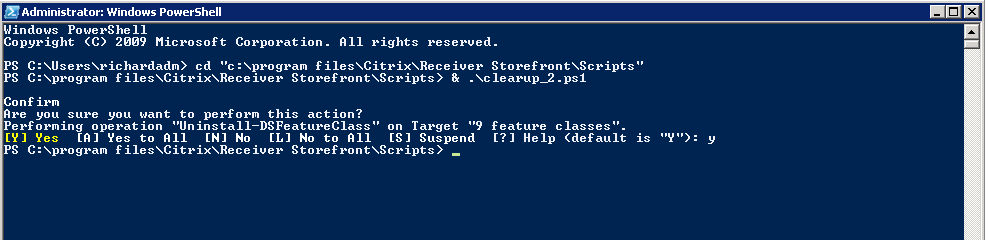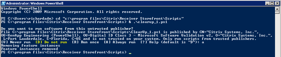 Let’s now then remove all config by running both ClearUp1 and ClearUp2 PowerShell scripts…. should have done that before… hmm… Ok, that is done! Let’s uninstall and install StoreFront again… check!