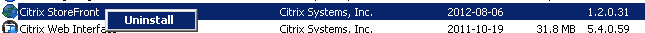 Now let’s uninstall StoreFront 1.2 (and remember that I’m actually doing this over an ICA session that was initiated from this StoreFront server though I’m sitting home this late Sunday evening…) š