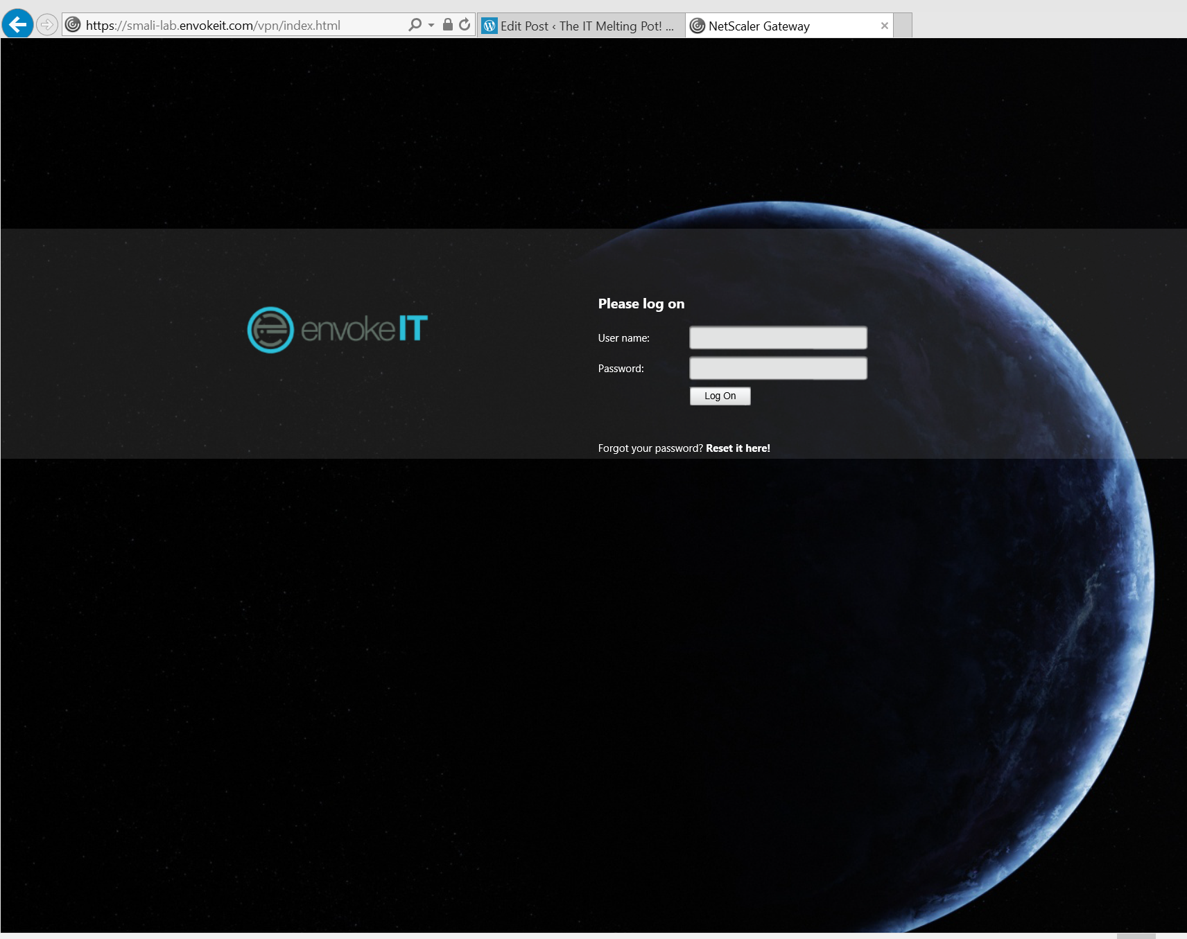 So after entering my username I’m prompted for this environments two-factor solution which is SMSPasscode, and the solution just pushed the code to my mobile phone which is nice! I really like the SMSPasscode solution and also the Azure Multi-Factor authentication solution that is very cool as well! I highly recommend looking at them and we at EnvokeIT can help you with both if you like! 😉