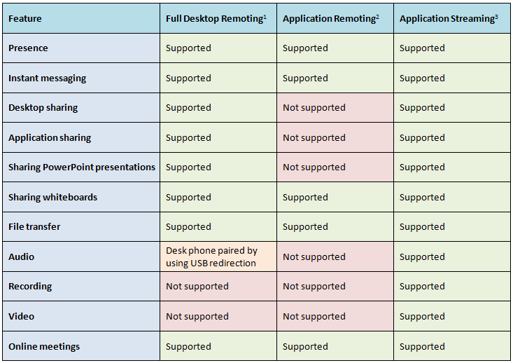 Before there has been a lot of issues with running Lync and what’s supported feature-wise depending on where you ran Lync, what protocol you where accessing it over and how Lync was presented (either as published desktop or as a published app). And this had it’s challenges for companies that for instance wanted to go to a BYOD model where the end-point device the user was sitting on wsn’t managed and didn’t allowed Lync to be installed and where those users then were relying on their XenApp or XenDesktop environment. And then there are features that aren’t supported or let’s say; didn’t work that well and really loaded the host server.